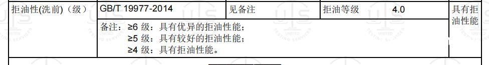 小韩哥提供的另一份检测报告显示,该款冲锋衣具备拒油性能,拒油等级为4。