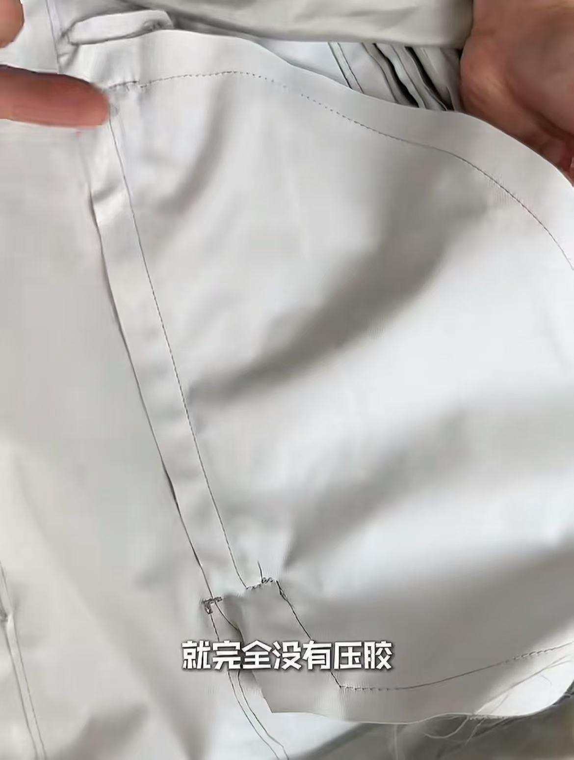 与宣称“所有裁片接缝处均使用无缝热风压胶”相悖