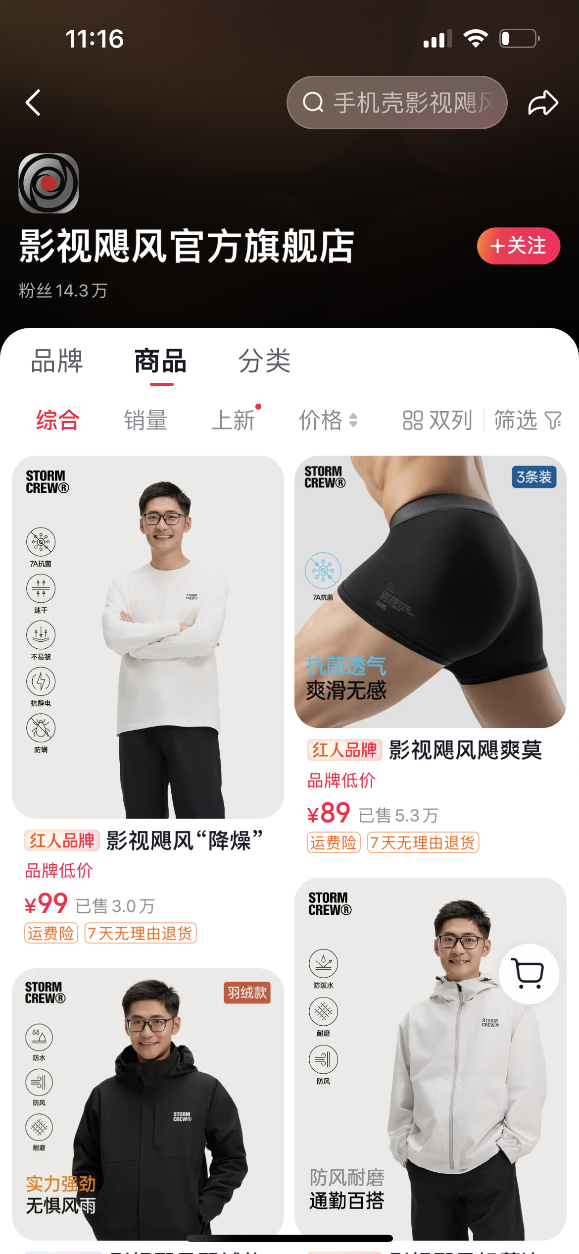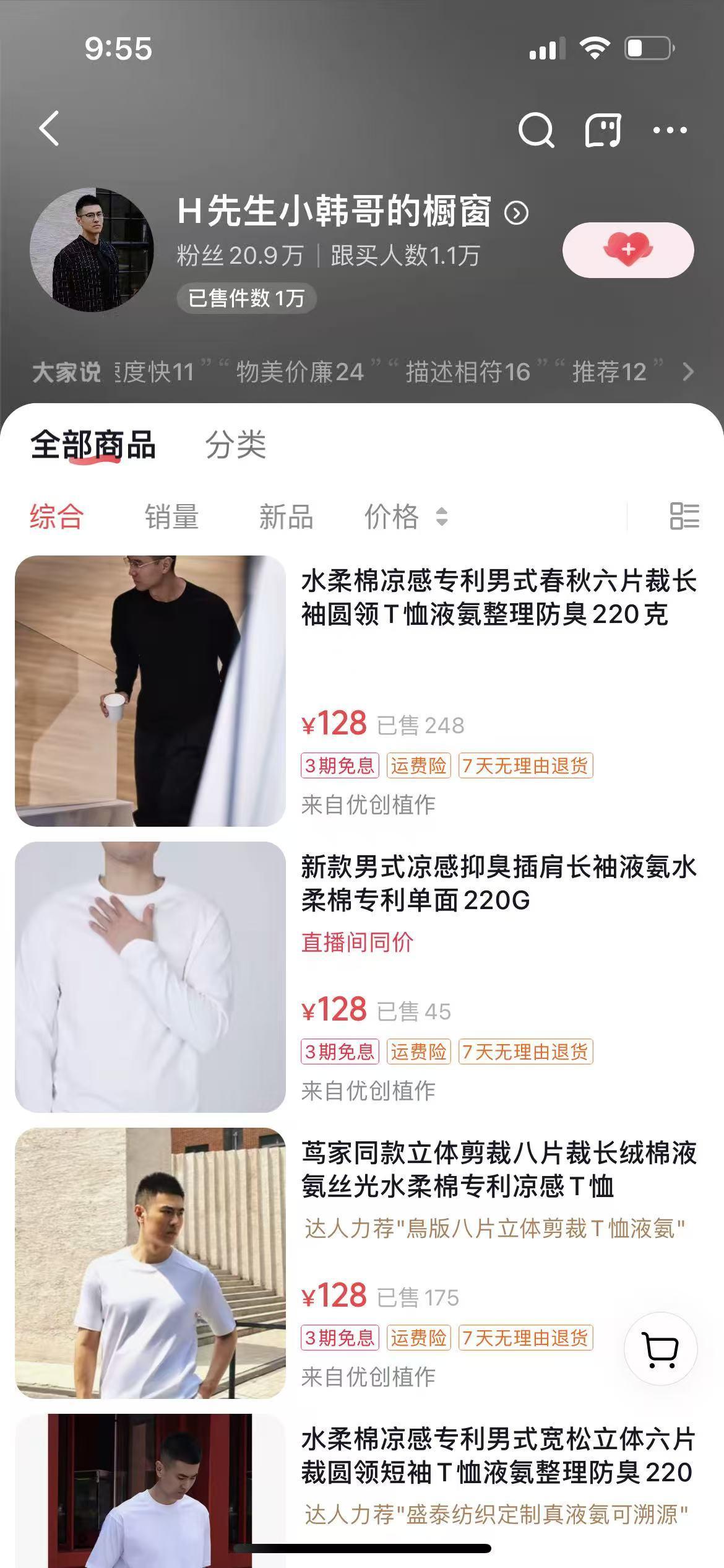 小韩哥本身也有带货服装产品