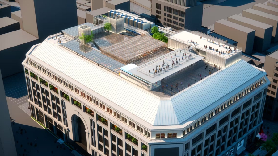 根据规划,高区将构建“外滩之眼”复合空间,充分挖掘屋顶景观优势,建造城市级的观景平台,进一步强化与外滩区域的空间联动。同时,注入品牌策展、艺术展览、娱乐体验等多元化业态与夜间消费新场景,打造南京路步行街夜生活高地。