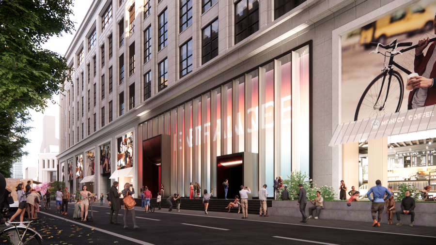对于沿街界面,在南京路侧,将结合品牌焕新,逐步打开封闭立面,让街面客流和商场客流充分融合。同步布局跨楼层复式店铺,通过引入时尚品牌旗舰店与立面开放的双重赋能,提升区域商业竞争力,促进消费转化。在天津路侧,打造“日咖夜酒”主题街区概念,通过增加外摆,打造外滩第二立面区域的特色休闲空间。