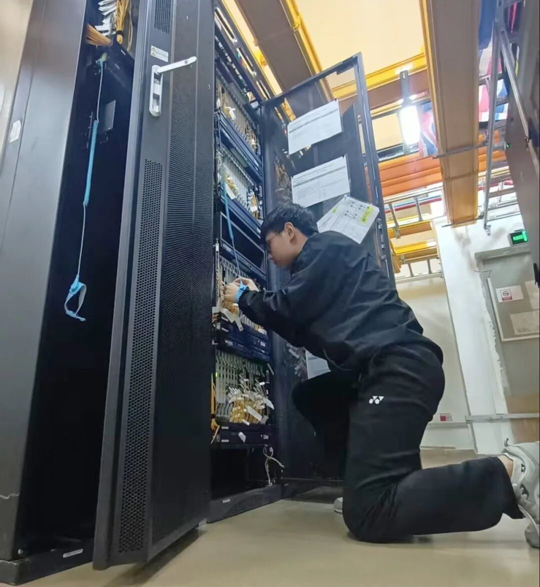 在多个竞赛场馆内,同学们活跃在网络保障第一线,肩负起网络设备调试、通信保障与数据流转等关键任务。从路由配置到信号优化,从实时传输到系统维护,他们将课堂所学的路由交换知识灵活运用于实战,细致高效地完成各项保障工作,确保了赛事成绩的精准同步与精彩瞬间的流畅直播。